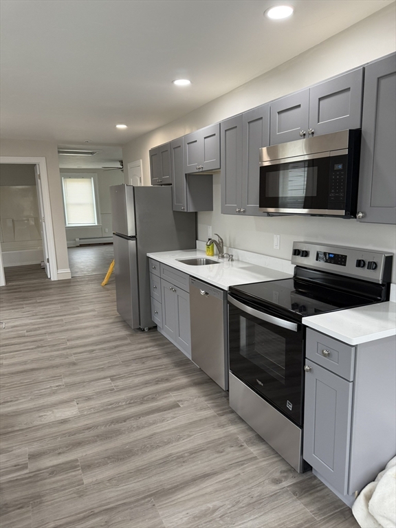 This is a must see!! Bright and sunny 1 bedroom apartment newly renovated and freshly painted. Location is very convenient, close to North Abington Center and South Weymouth Commuter Rail. The kitchen is brand new and has stainless appliances and granite countertops. Off the kitchen you have a great space for a coat rank or make into an office area. The living room has beautiful fireplace which you could add a fake log for a tranquil time. Hardwood floors throughout, brand new bath, spacious bedroom along with closet space. Off-street parking. Strong credit and references required. No pets!! Still needs final touches will be beautiful when completed.